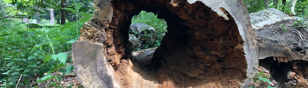 Exploring the inner rings of a tree, during a walk round Clumber Park.