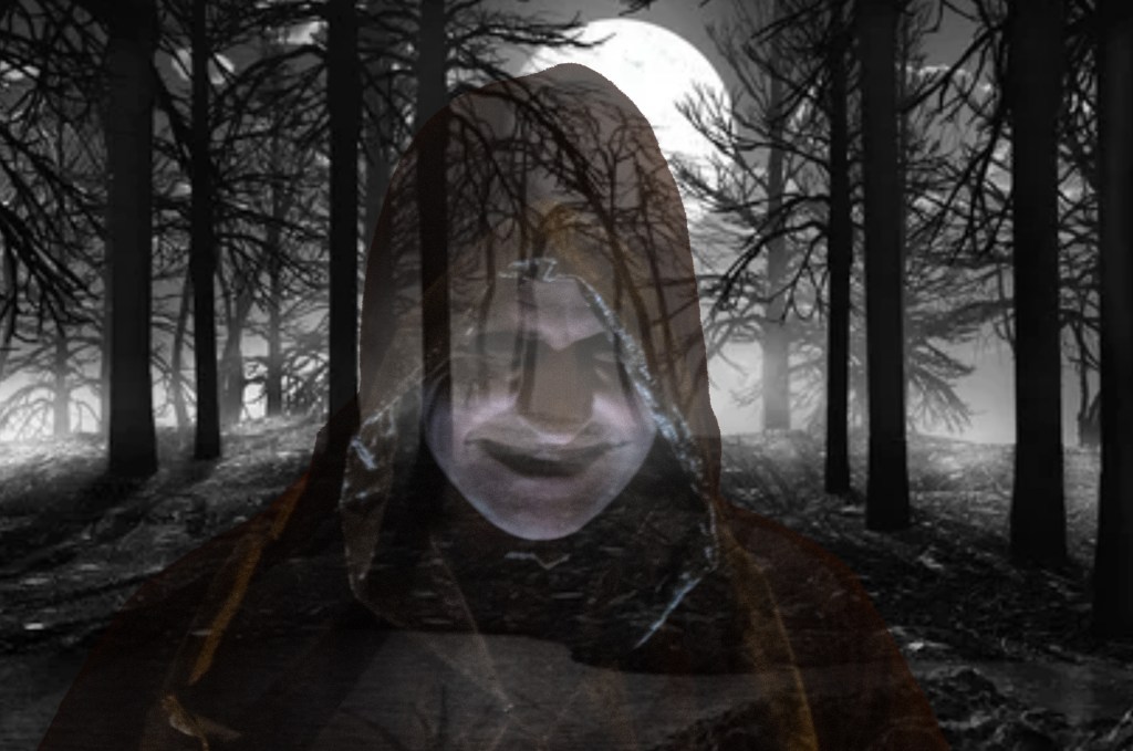 For a backdrop, you want a spooky landscape—dark woods, graveyard, ruined castle (you know the tropes). Then you overlay the backdrop with a subject, but dial down the transparency to about fifty percent. Your backdrop will determine how much dialing you will need to do. You want the subject to be visible, but not too much.