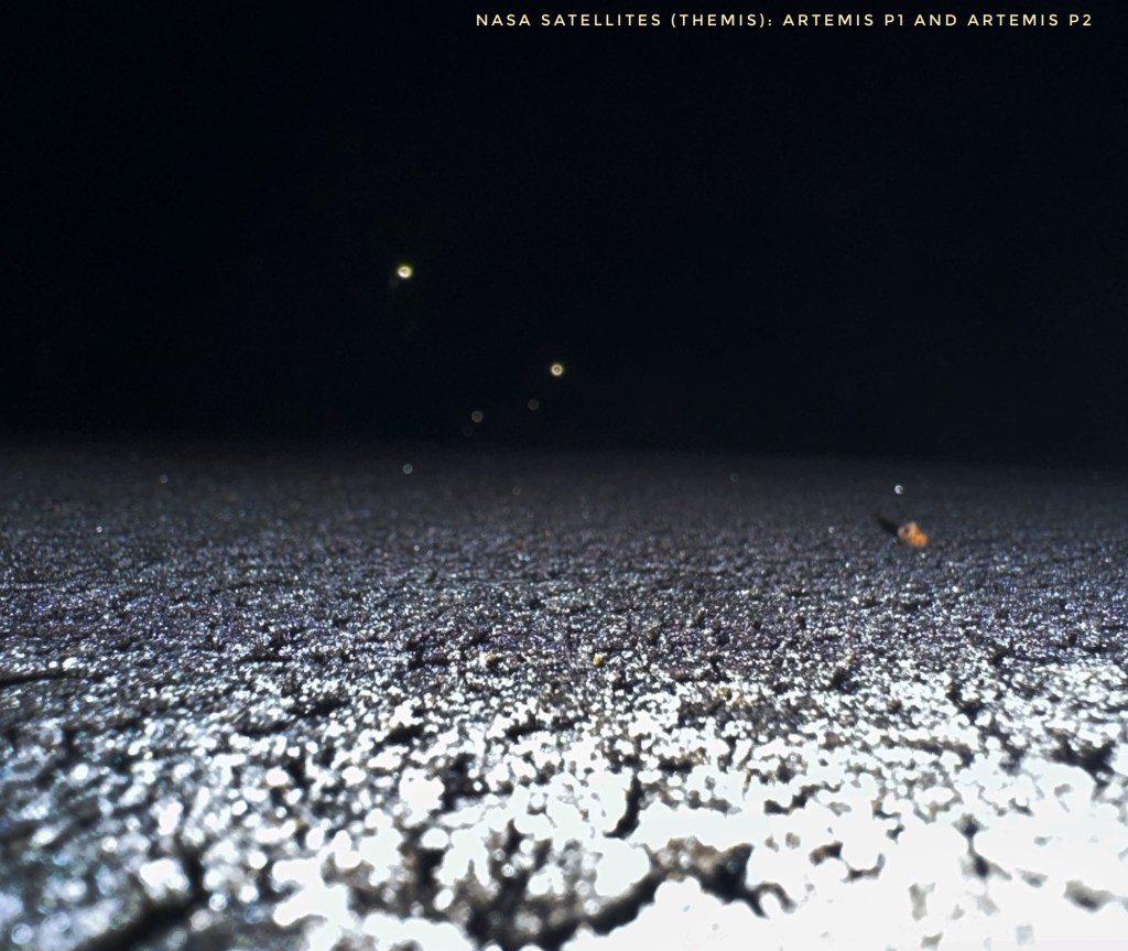 Three of the satellites orbit the Earth, but two (Artemis P1 and Artemis P2 in the photograph) orbit the moon. The Classicist in me was immediately drawn to these two satellites and their striking names (Artemis is the Greek goddess of the moon).