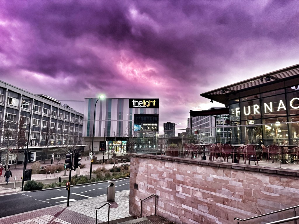 Sometimes an innocent visit to the cinema presents a stunning opportunity for a freakish cityscape shot. I’ve saturated the purples in the shot slightly, but the sky really was the strangest of colours.